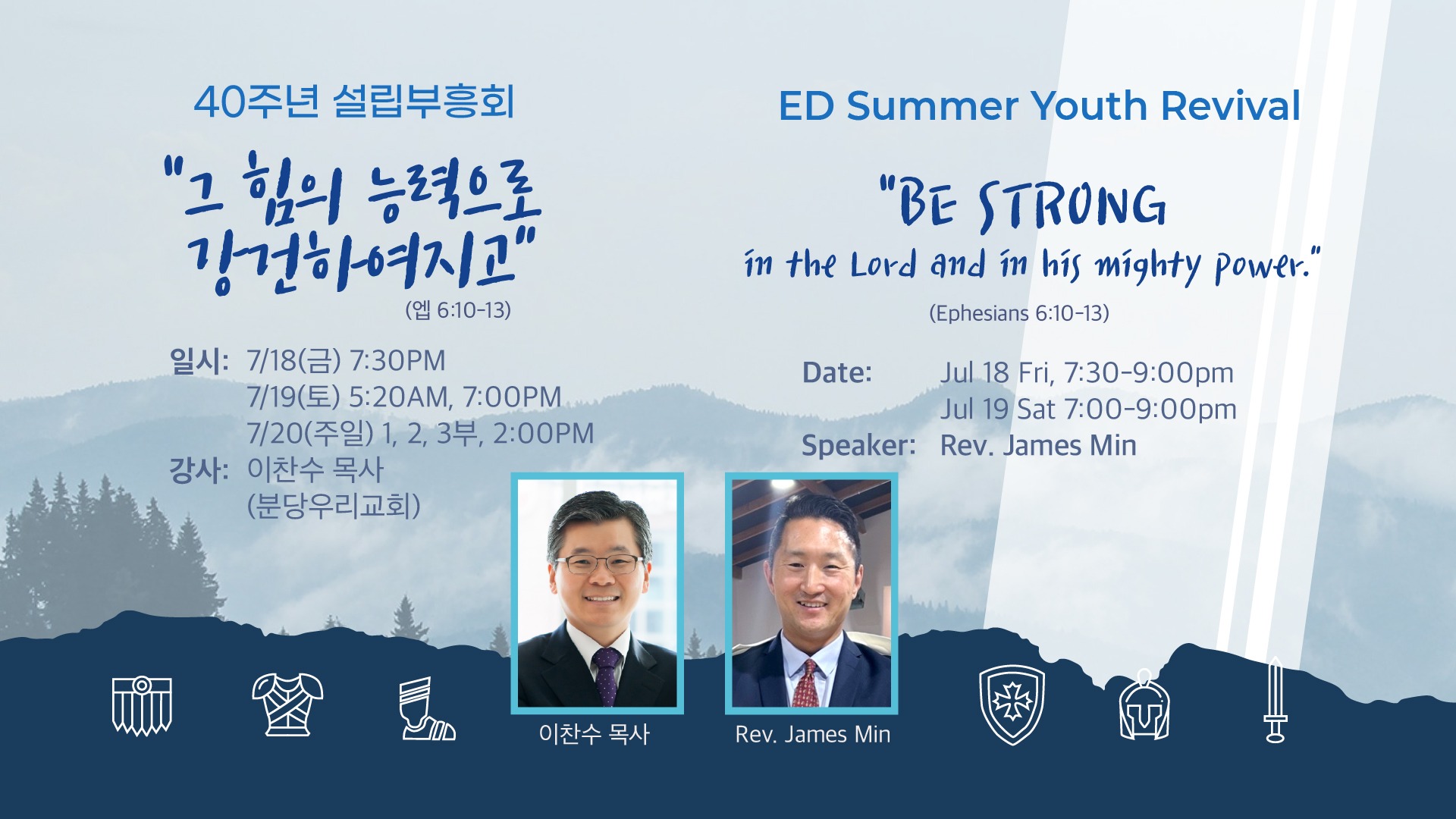 7/18일부터 7월 20일까지 한국 분당 우리교회를 섬기는 이 찬수목사님을 초청,